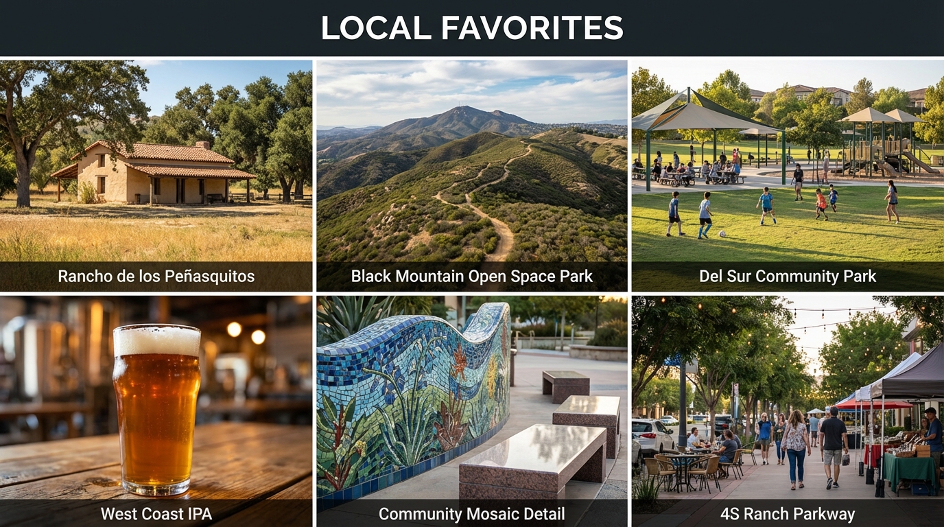 Some notable places nearby include the popular 4S Ranch Town Center, which features a range of shops and eateries. Here are some local favorites: