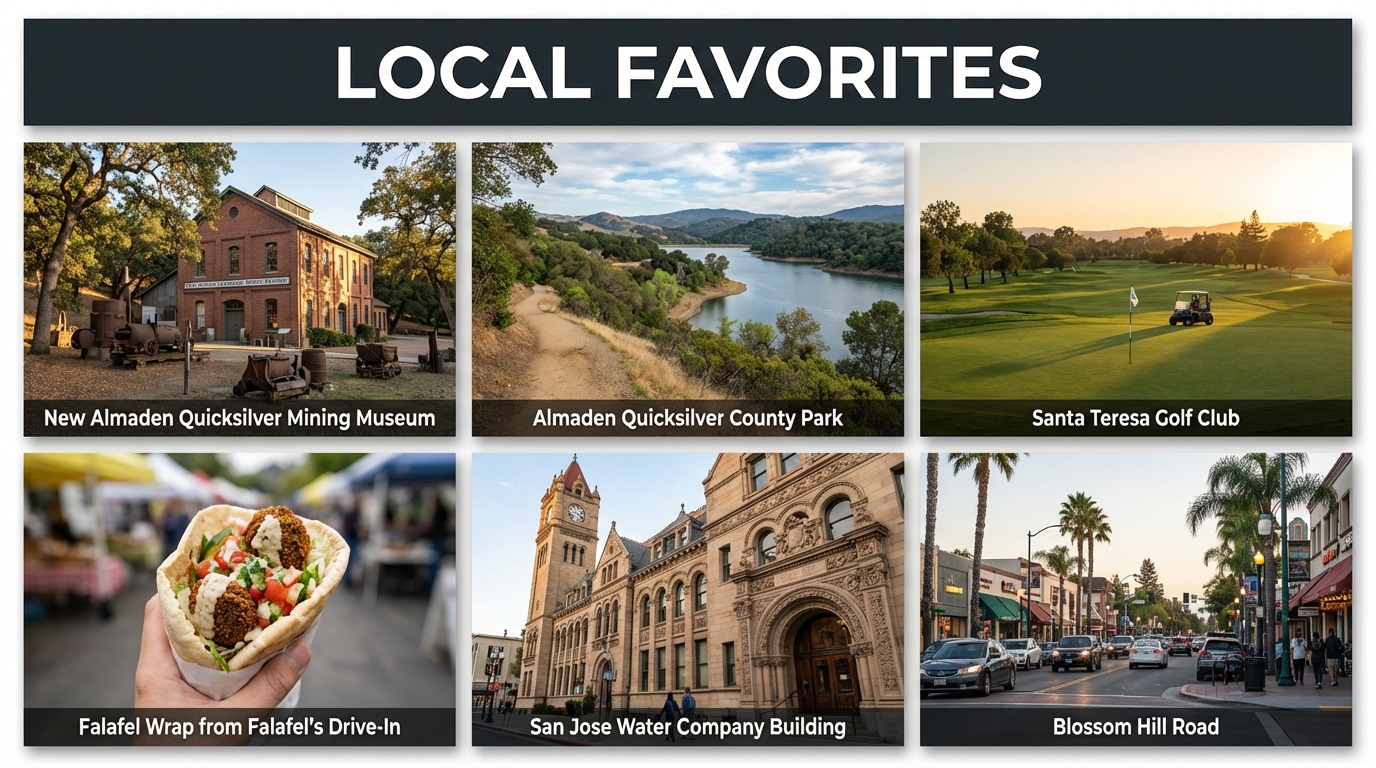 With local highlights such as the Almaden Quicksilver County Park and the Almaden Valley Library, residents can enjoy a blend of nature and community resources. Here are some key locations to explore: