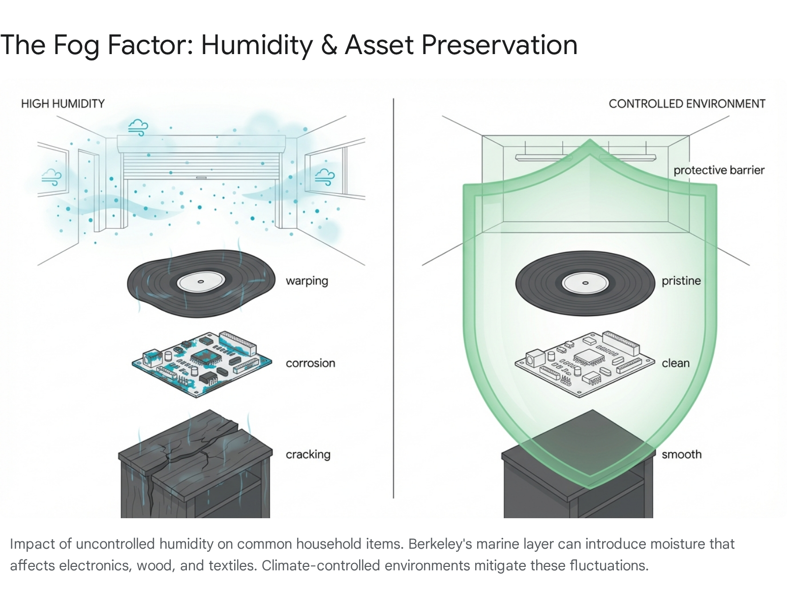 Berkeley's climate is generally mild, but it has specific risks for stored items that are often underestimated.