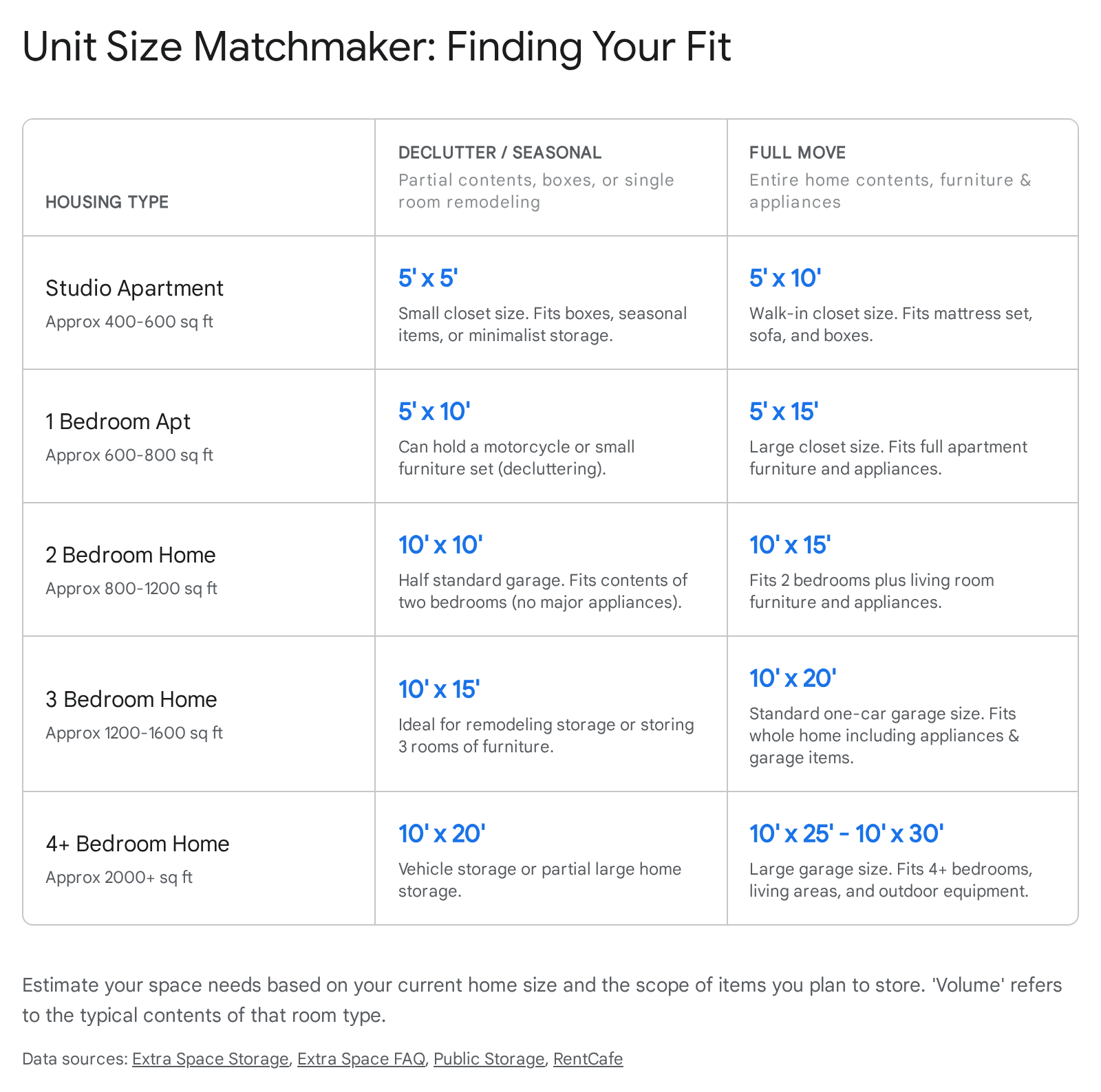 The Storage Implication: You cannot rely on "volume" estimates found on generic websites. You need "floor area." A 5x5 unit might hold 20 boxes, but it won't hold a Queen mattress set plus a vintage armoire.