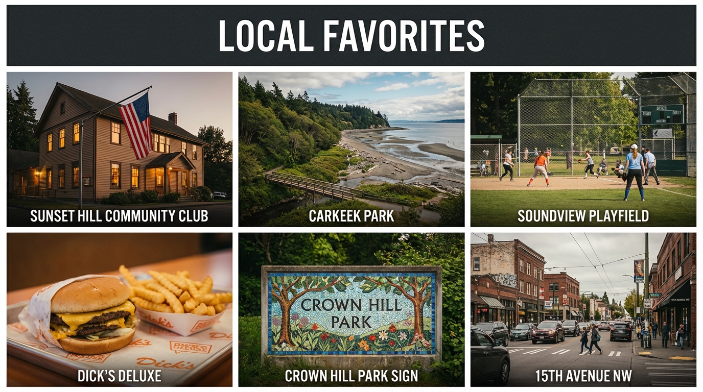 Nearby parks include the popular Crown Hill Park, where families can enjoy picnics and playgrounds. Other local favorites are: