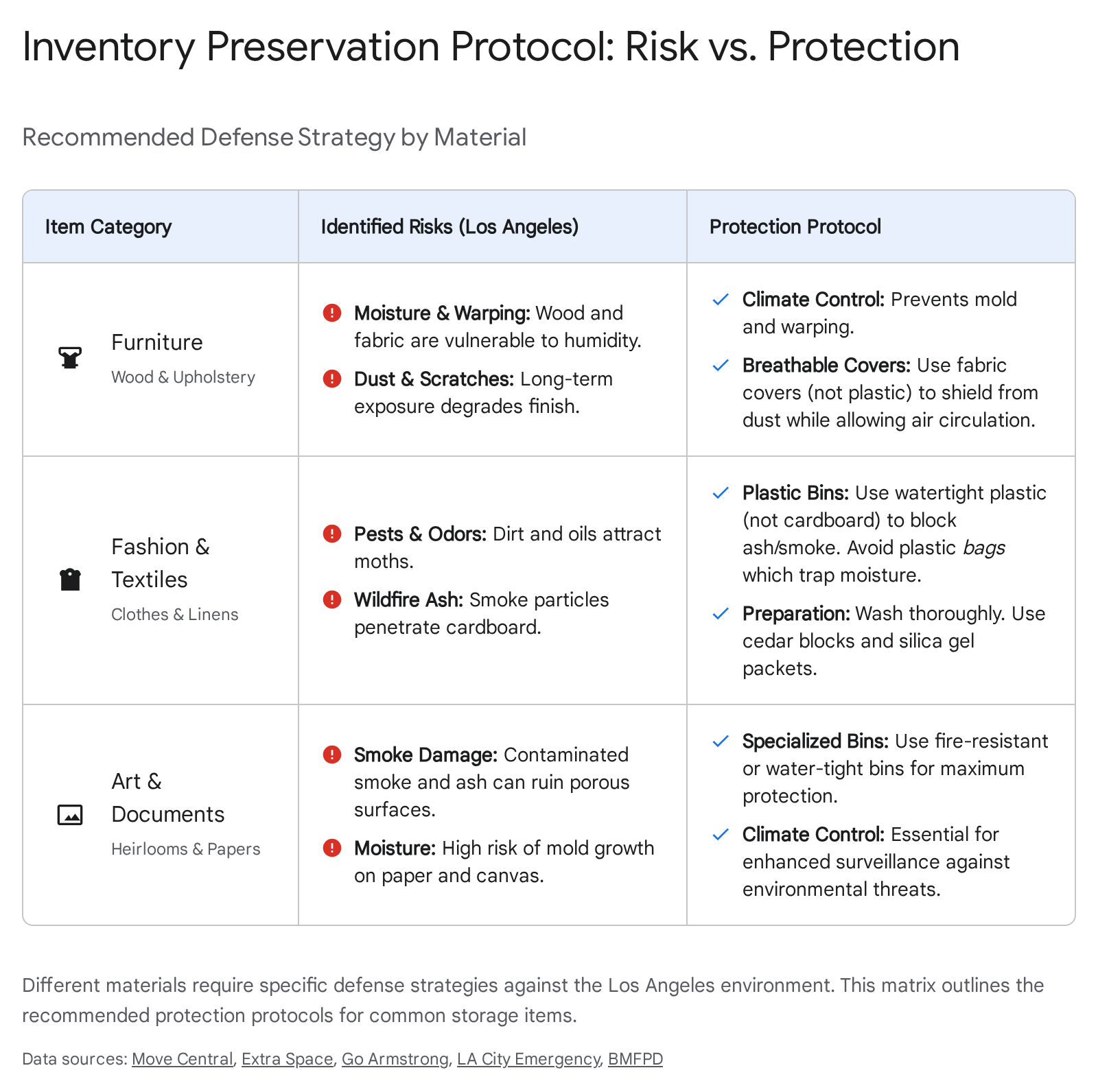 Packing for Particulates: For maximum protection, tenants should use plastic bins with airtight seals rather than cardboard boxes. Cardboard is porous and can absorb moisture and odors; it offers little protection against fine ash.45 For delicate fabrics (fashion inventory), breathable garment bags inside sealed containers are recommended to prevent yellowing while blocking dust.47