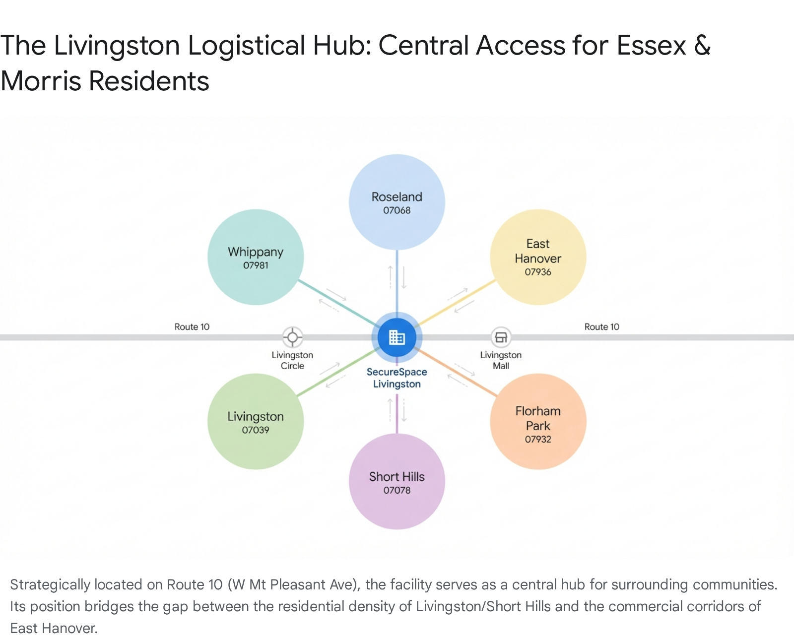 Traffic Tip: Utilizing a facility directly on Route 10 keeps heavy moving trucks off the smaller, winding residential streets of Livingston, a courtesy your neighbors will appreciate.