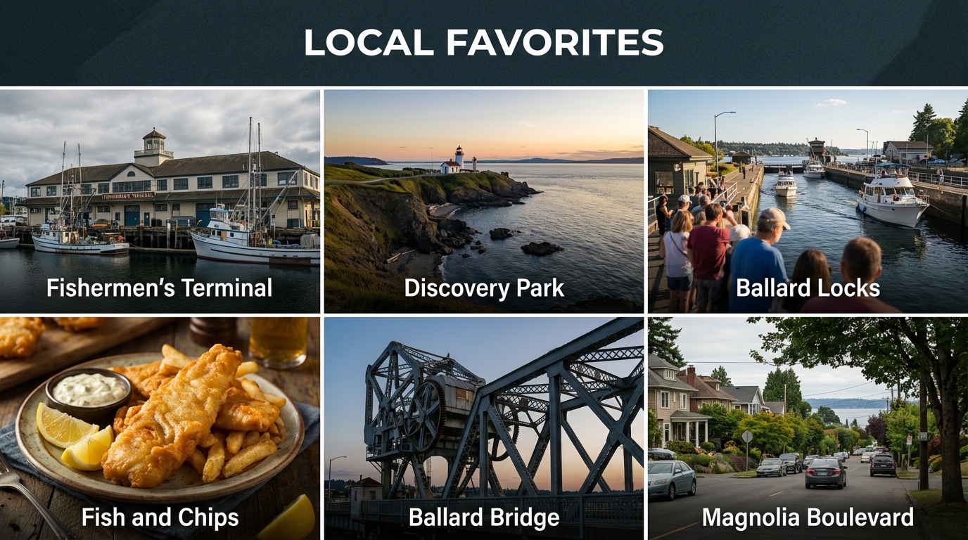 | Ballard / Sunset Hill | ~5–8 miles |