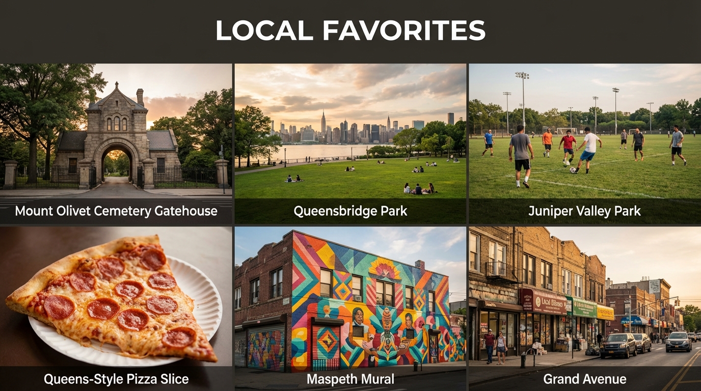 Local parks and recreational areas, such as Maspeth Memorial Park, provide beautiful green spaces for relaxation and community events. Other notable landmarks include: