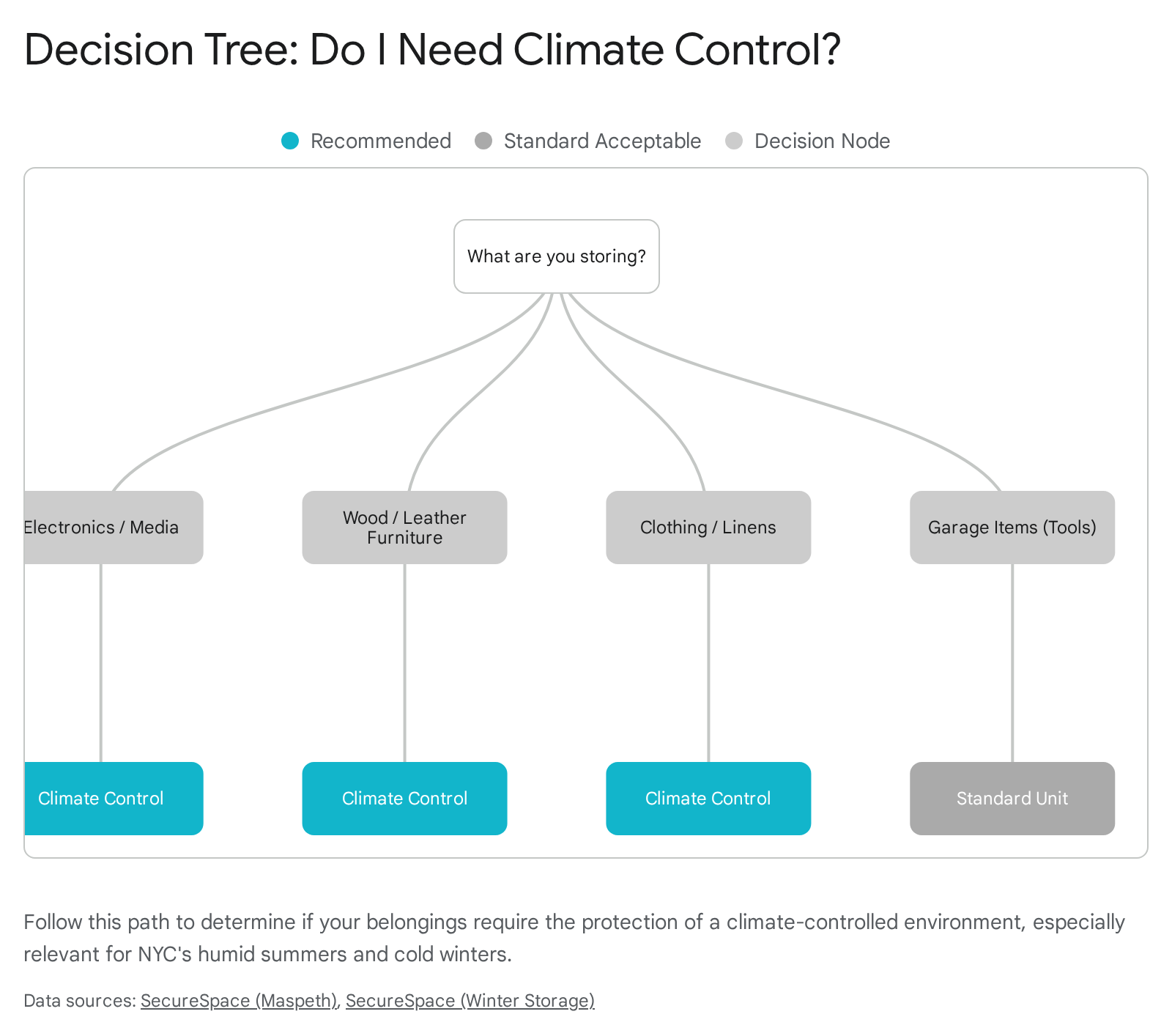 Residents in Seaport (10038) and Red Hook are acutely aware of humidity and moisture. When moving items from a damp basement or a non-climate-controlled apartment, you might think standard storage is fine. However, the New York climate poses specific risks.