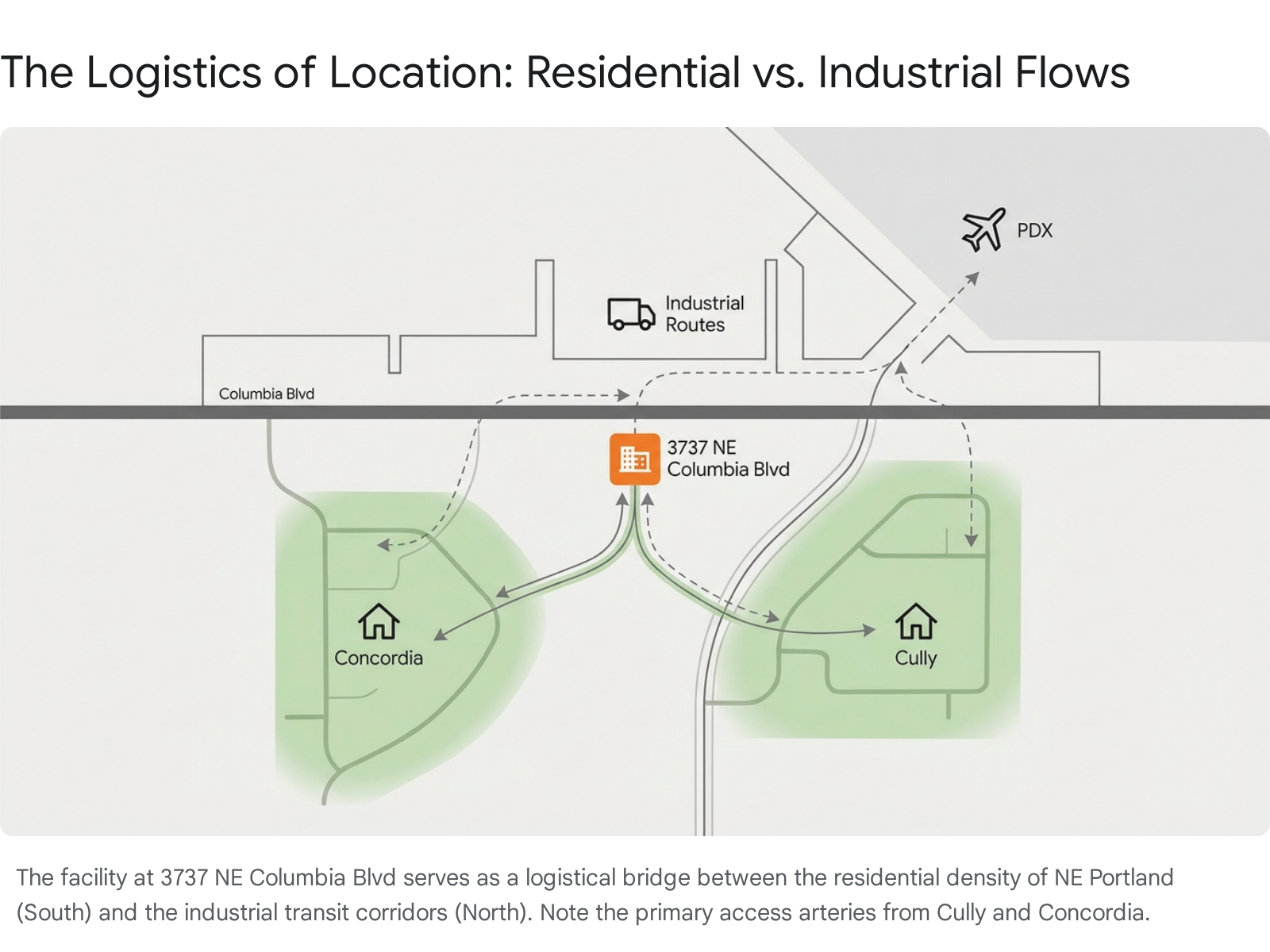 To understand the value proposition of storage at 3737 NE Columbia Blvd, one must first understand the unique urban geography it occupies. The facility sits at a distinct and often misunderstood interface: the border between the residential neighborhoods of Northeast Portland and the heavy industrial "working river" zone of the Columbia Corridor. This is not merely a zoning line; it is a transition in lifestyle, traffic behavior, and environmental exposure.