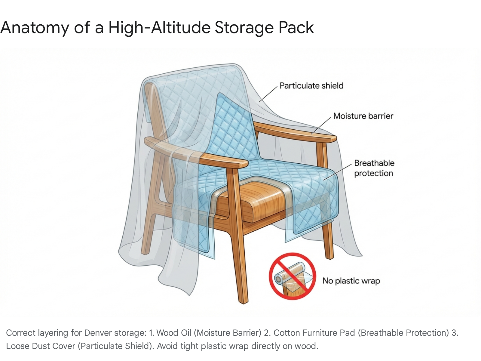 Breathable Wrap: Wrap furniture in cotton or wool furniture pads, not plastic shrink wrap. Plastic can trap any condensation that forms during temperature shifts, creating a micro-climate that promotes rot or finish damage.
