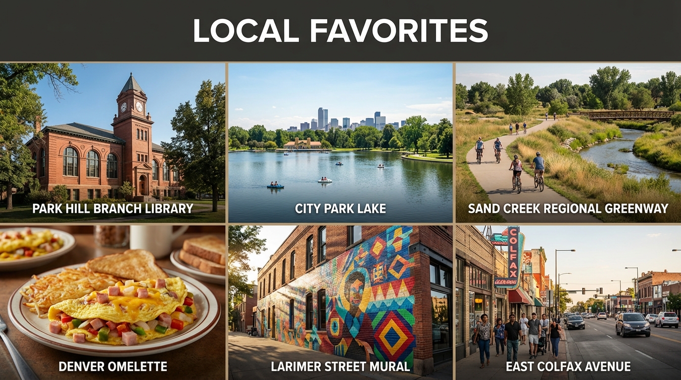 Northeast Park Hill is a vibrant neighborhood with several notable landmarks and main roads that make it easy to navigate. Just a short drive away, you’ll find the bustling East 35th Avenue, which connects to various local shops and eateries. This area is also home to the iconic Central Park, providing residents with a beautiful space to relax and enjoy outdoor activities.