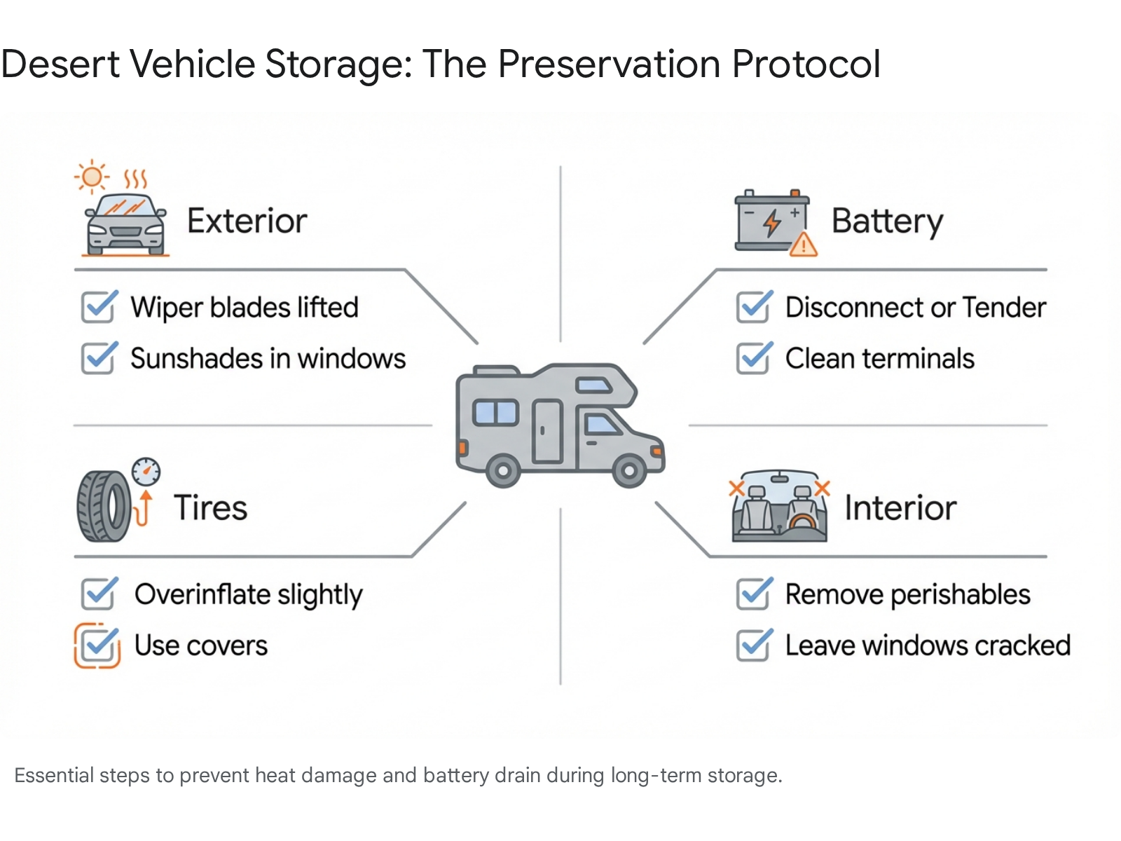 The Challenge: Many HOAs in Palm Springs (especially in condos and gated communities like those in 92262) strictly forbid RVs or boats in driveways. Even if allowed, the sun is a brutal enemy to tires, seals, and decals.