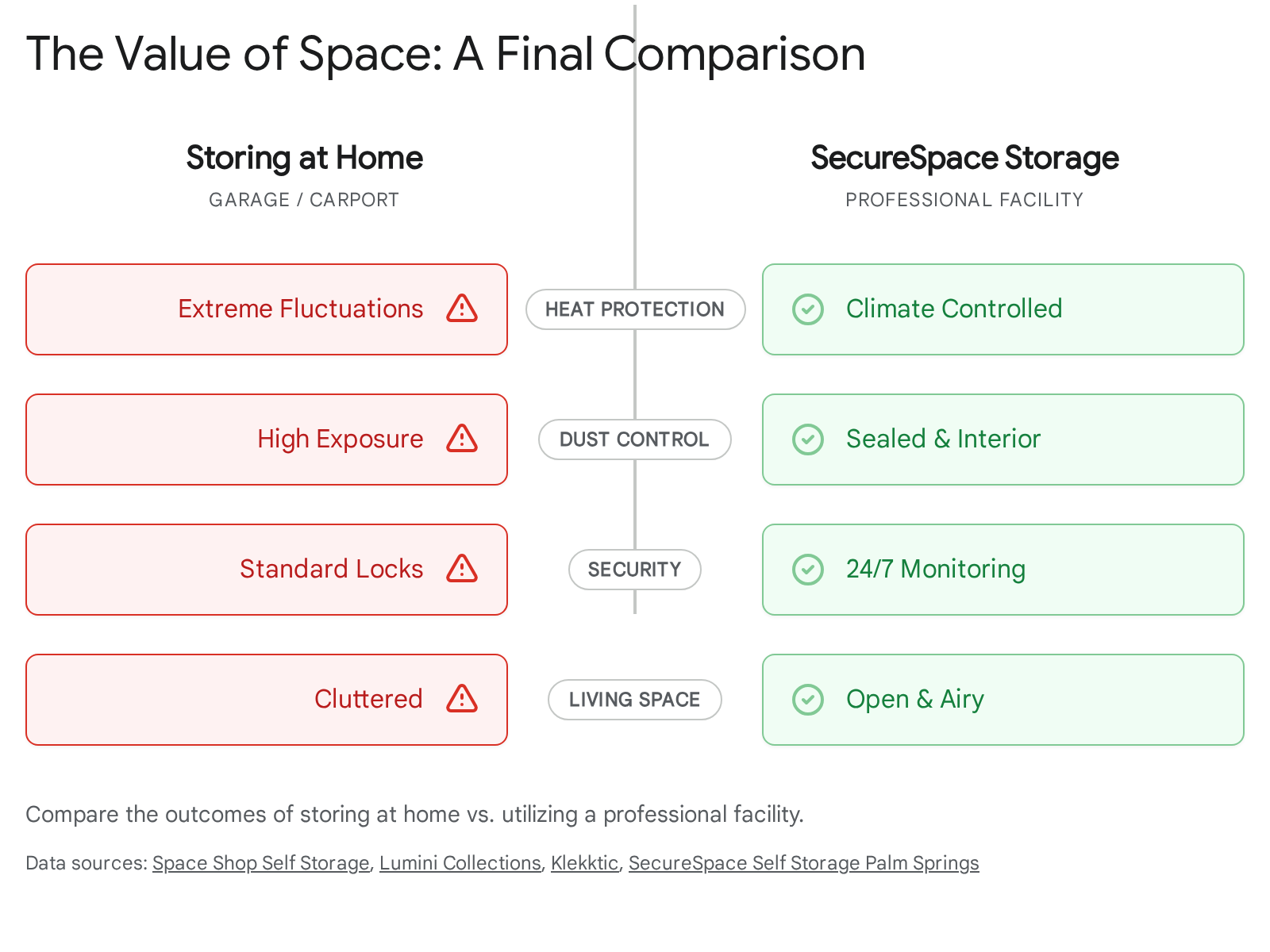 The Fix: SecureSpace Palm Springs offers modern climate-controlled units.9 These units are kept within a temperature range that prevents the extreme peaks of the desert summer. They act as a thermal buffer.