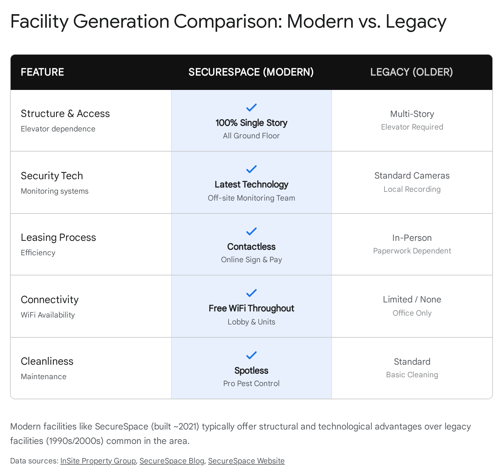 The Modern Tech Baseline: As a newly built/branded facility (circa 2021), SecureSpace typically deploys a modern security tech stack that contrasts sharply with older "gen-1" facilities. This usually includes high-definition digital surveillance (capable of reading license plates, unlike grainy analog tape), bright LED lighting (crucial for evening visits), and app-based or integrated keypad access that logs entry and exit events.