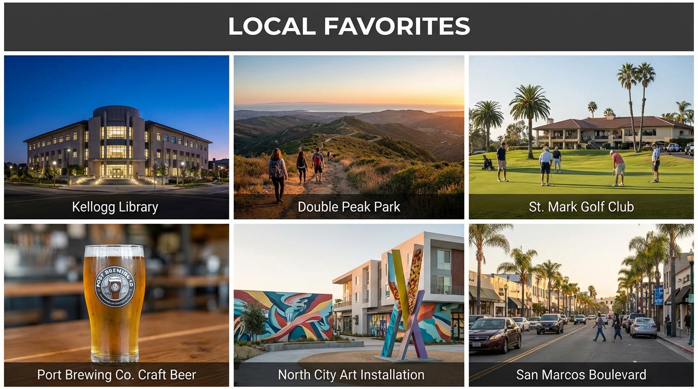 San Marcos boasts an array of parks and public spaces that enhance the quality of life for residents. These green areas provide a perfect escape for relaxation, recreation, and social gatherings. Notable parks include the expansive Double Peak Park, which offers stunning views and hiking trails, and the family-friendly Discovery Lake, ideal for picnics and fishing.