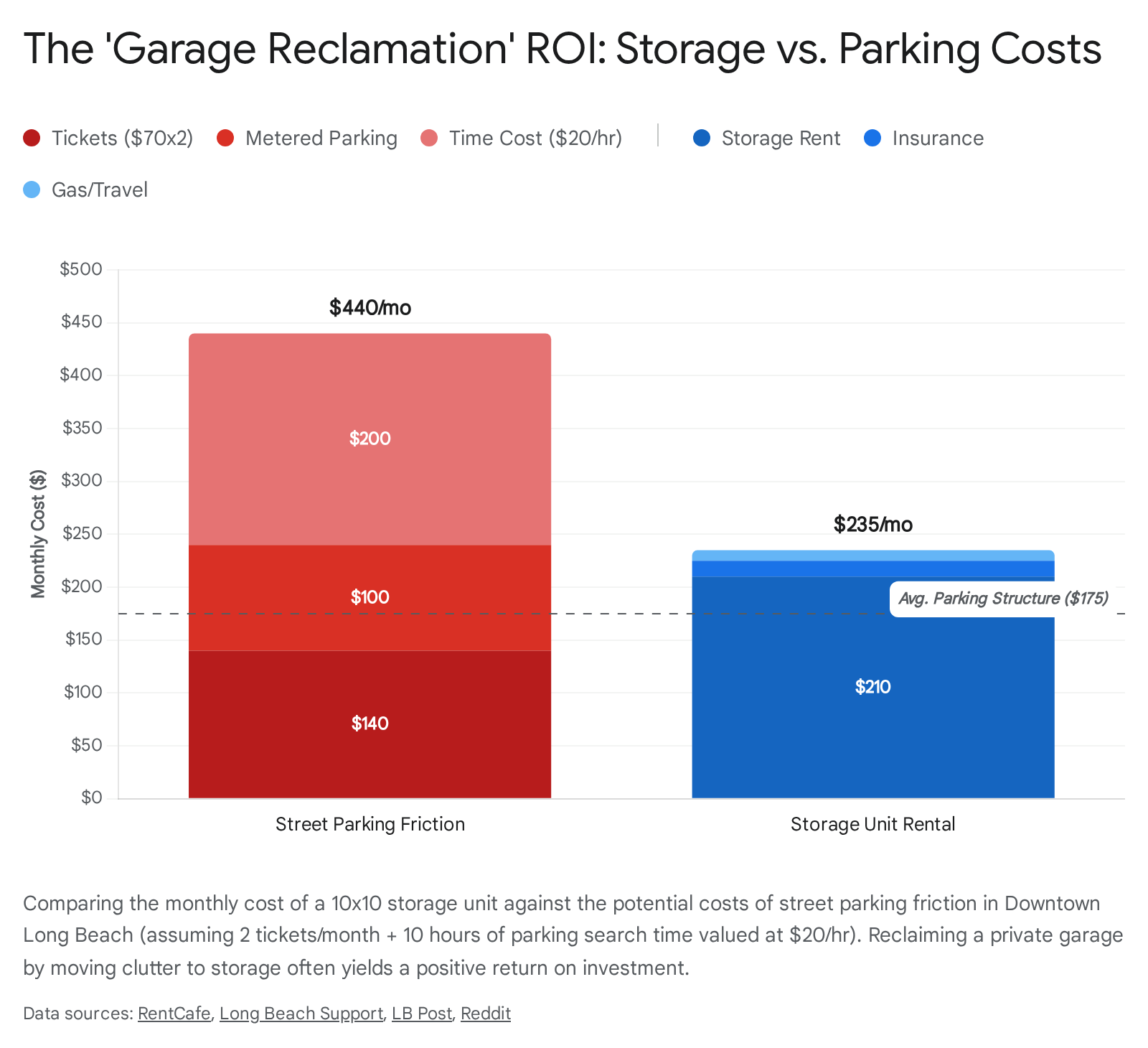 Garage Reclamation Economics: For those lucky enough to have a garage that is currently filled with "junk," moving that junk to SecureSpace allows them to park their car off-street. The economic calculation is compelling: A $200/month storage unit is often cheaper than the cumulative cost of parking tickets, towing fees, vehicle degradation from street parking, and the significant "time cost" of hunting for parking daily.17