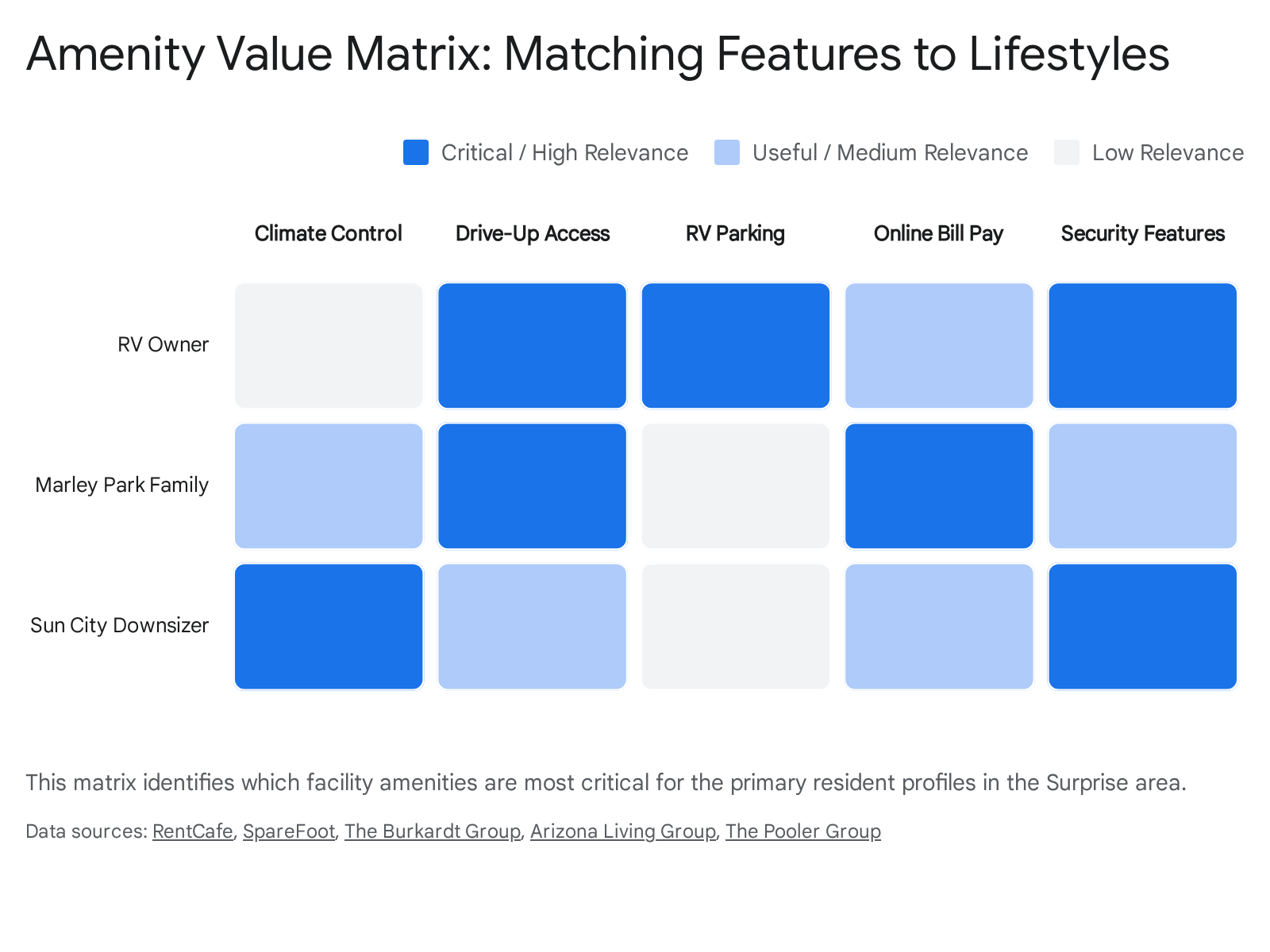 Surprise is categorized as a "Mixed" market type, a designation that reflects its diverse socioeconomic and demographic tapestry.2 This mix drives storage demand from two distinct, yet equally pressing, directions.
