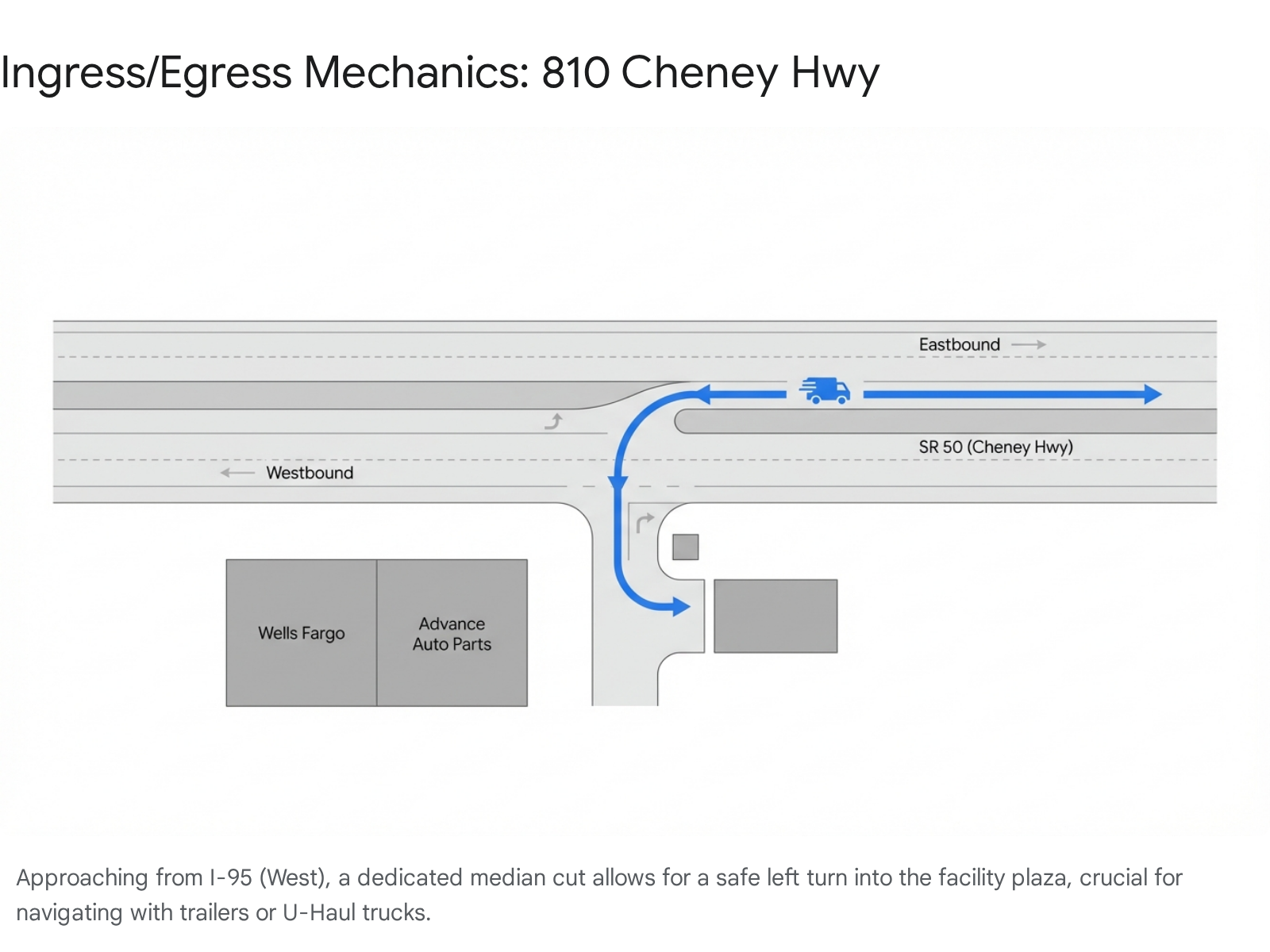 The facility at 810 Cheney Highway occupies what urban planners might term a "Mid-Corridor" position. It sits approximately 2 miles east of the Interstate 95 interchange and significantly west of the congested US-1 intersection.6 This positioning is not merely a mailing address; it is a significant logistical asset that offers insulation from the region’s most severe traffic bottlenecks.