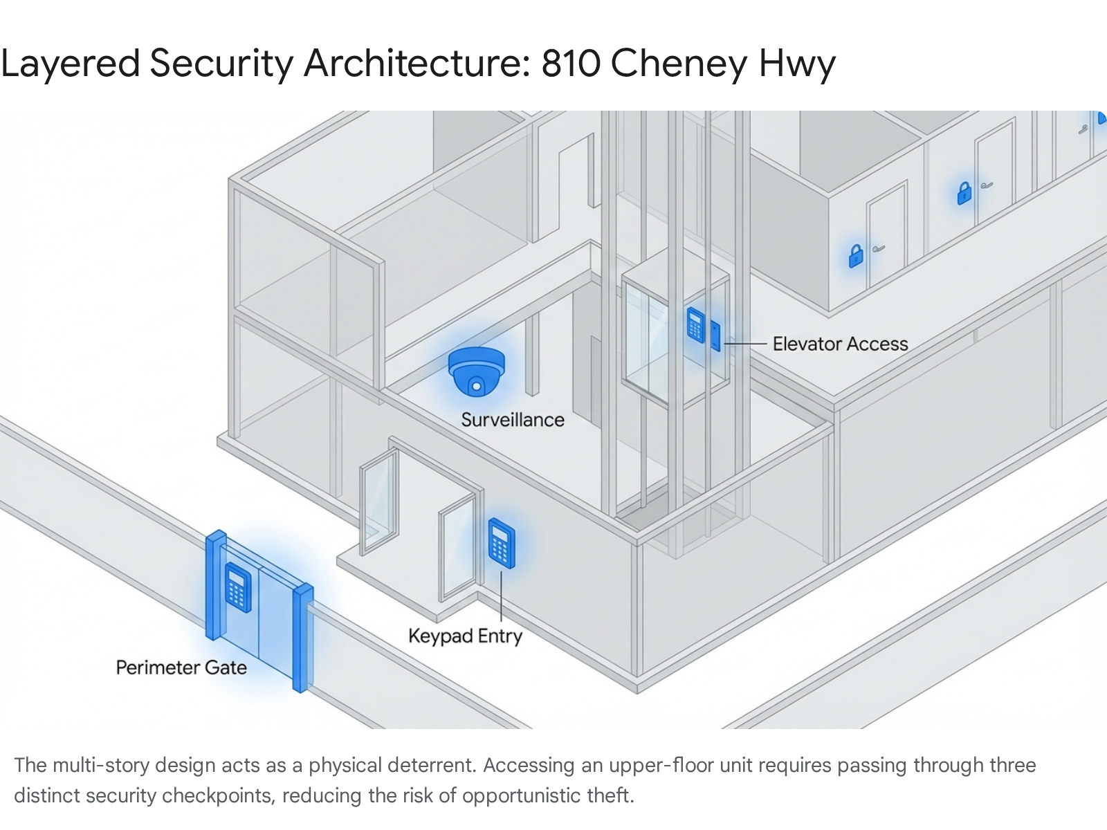 810 Cheney Hwy is a multi-story conversion facility.15 In the context of Florida, verticality is a significant security and safety feature.