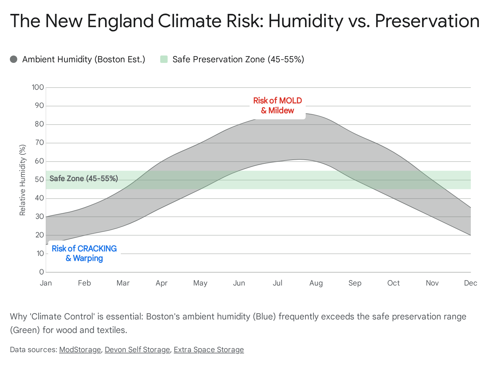 "Climate Controlled" is a term often used interchangeably with "Air Conditioned," but for storage purposes, the critical metric is Relative Humidity (RH).