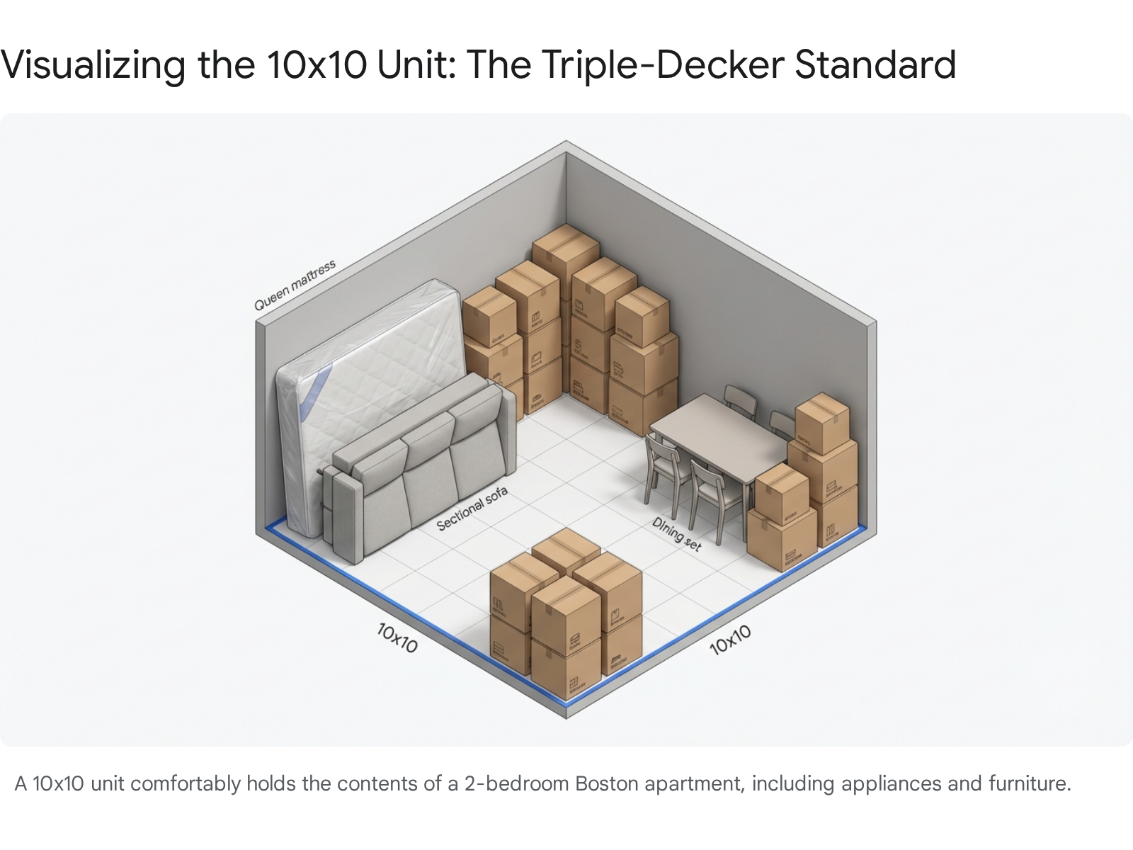 Generic storage sizing guides often fail to account for the specific quirks of Boston living. Our furniture is often scaled to fit through narrow doors, and our apartments have unique volume constraints.